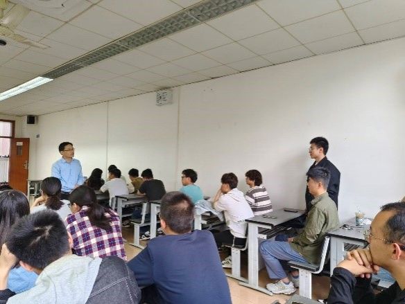 2024年4月18日下午2:30,物理学院研究生三党支部在九里校区4305A开展集中学习,邀请学院党委委员讲专题党课,支部全体党员参加。学习由支部书记杨浩主持。